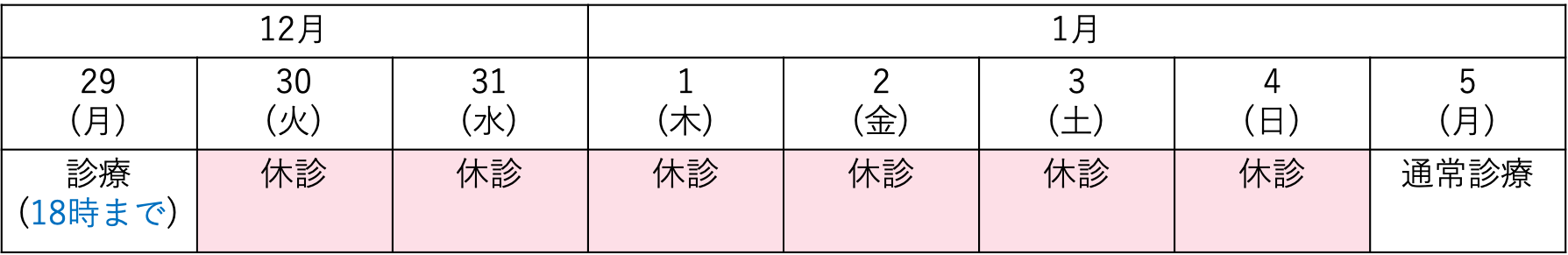 12月30日(火)〜1月4日(日)は休診とさせていただきます。